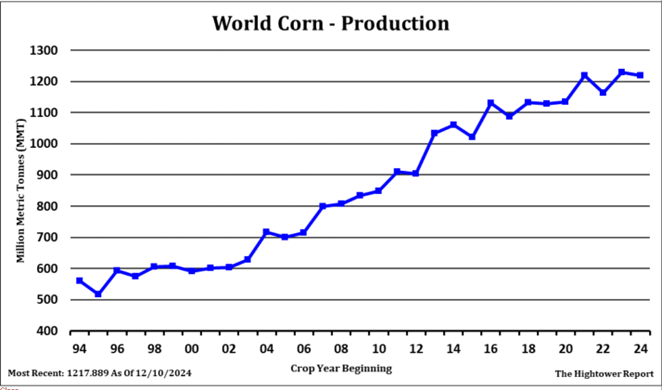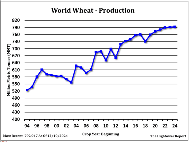 WH is near 5.47. Funds could be covering shorts near yearend. Wheat open interest dropped to 413 thousand on Dec liquidation. Open increase has increased back to 463 thousand. The global supply outlook is still tight with higher prices expected over time. Russia data showed the country’s 2024 wheat crop totaled 82 mmt. The largest producing area’s crop was down 30% from the prior year after spring frosts were followed by a summer drought. Weekly US export sales were 612 mt. Total commit is near 16.7 mmt vs 15.1ly. USDA goal is 23.1 mmt vs 19.2 ly