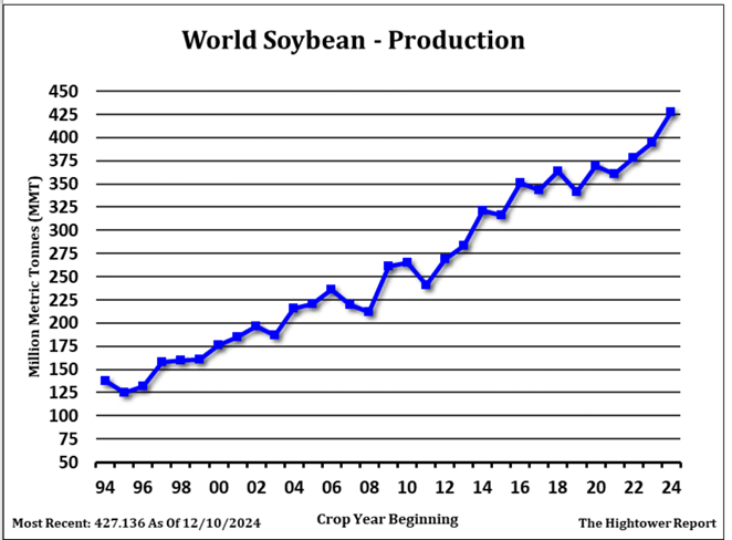 Last Friday in 2024. 2024 started with increase US rates but economy turned stronger. 2025 starts with tariffs but US economy still strong. Corn futures ended unch and near 4.53. CH has now traded over the 200 DMA. Corn open interest dropped to 1,518 thousand contract after Dec contract expired. Open interest has rallied back to near 1,631 thousand. Strong demand for US corn and drier Argentina forecast mat be triggering new buying. Some could see USDA lowering US corn carryout in the January report. Weekly US export sales were 1,710 mt. Total commit is near 38.0 mmt vs 29.4 ly. USDA goal is 62.8 mmt vs 58.2 ly. Colombia, Japan, S Korea and Mexico were best buyers.