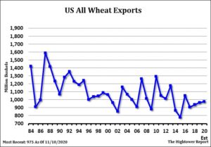 Wheat futures are higher today on rumors Hong Kong bought US HRS. Some feel that Managed Funds may be done for now liquidating out of soybean and corn longs and going short Chicago wheat. USDA is expected to increase Canada and Australia wheat crops on tomorrow report. Chicago nearby wheat futures are now near 10 week lows. Talk of higher Russia, EU and India wheat exports has helped push wheat prices lower. Some feel final 2021 Russia, Argentina and US wheat crops could drop from current estimates. This and talk of higher corn prices could push wheat futures higher in 2021. Some feel US flour users should increase 2021 coverage. Currently some estimate coverage near 50 pct for Q1 and 25 pct for Q2. Weekly US wheat sales are estimated near 200-550 mt versus 446 last week. US HRW prices are near EU and Russia but so far new World trade has been still going to east Europe and Russia. There are rumors that Hong Kong has bought US HRS wheat. A successful Covid vaccine could also increase US food demand late In 2021.
