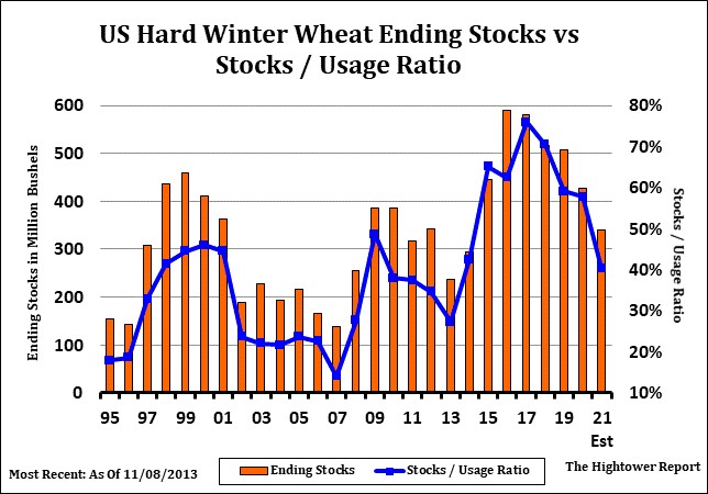 Wheat futures ended mixed. WH was down 3 cents and near 7.51. KWH was up 1 cent and near 7.70. MWH was down 7 cents and near 9.00. Funds continue to add to WH short due to slower US export pace and a hedge against long corn and soybean positions. KWH has had a wild ride. KWH rallied from the Jan 14 low of 7.43 to the Jan 25 high of 8.49 to only the drop to todays low at 7.53. Supply bulls feel that a drop in EU and Russia wheat exports from USDA estimate and an eventual increase in tension between Russia and Ukraine and Russia and NATO could still rally prices. Talk of a drier than normal US south plains for the rest of February and March could stress the US 2022 HRW crop. Trade estimates US 2021/22 wheat carryout at 629 mil bu vs USDA Jan 628. Trade also estimates World 2021/22 wheat end stocks at 279.9 mmt vs USDA Jan estimate of 279.9. Weekly wheat export sales were only 57 mt. Total commit is 17.2 mmt vs 22.4 ly.