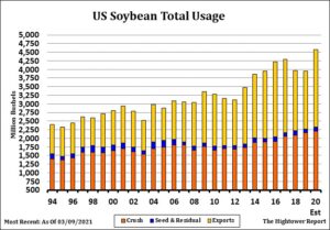 Corn futures traded lower. Fact USDA did not raise US corn exports and lower US 2020/21 carryout on yesterday’s report weighed on prices. Some feel that South America corn crop could be 3-6 mmt below USDA guess. Delays in plantings due to wet weather and dry conditions in S Brazil could also lower Brazil final corn crop and exports. A lower Argentina crop could also reduce the window where Argentina corn price are lower than US and compete for US exports. Weekly US corn export sales are est near 400-750 mt versus 115 last week Weekly US ethanol production was up 10 pct from last week but still down 10 pct from last year. Stocks were down 1 pct from last week and9 pct from last year. Margins are improving. This could increase processors demand for corn. Dalian corn futures dropped 15 cents to near 10.77. USDA estimates US 2020/21 corn carryout at 1,502 mil bu. Most private estimates are near 1,100 mil bu. Difference is exports. Same groups est US 2021 corn crop near 15,250 mil bu and 2021/22 carryout near 1,100. If true that is “not” bearish. Some feel CK support is near 5.30-5.35. Still there may not be a lot of bullish information between now and USDA March 31 report. Most look for US March 1 corn stocks near 7,780 mil bu vs 7,951 last year.
