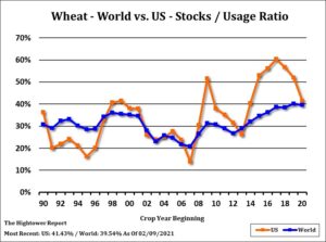 Wheat futures traded lower. WK continues to chop around between 6.40 and 6.80. Wheat futures are struggling with talk of lower EU and Russia wheat exports and high inverses in Matif and Russia wheat futures versus low US wheat export demand and carries in US wheat futures. Talk of higher US GDP could increase food demand. Food services could be preparing for increase post Covid food demand. House took out aid to famers in new stimulus deal. Senate Republicans will try to add it back in. Wheat prices may be up to north hemisphere spring weather. US south plains could see rains tomorrow and late next week. Weekly US wheat export sales are est near 100-500 mt vs 167 last week. Total commit is near 23 mmt vs 22 last year. USDA goal is 27 mmt vs 26 last year.