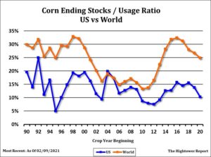 Corn futures traded lower. Technically selling weighed on futures. Talk of increase South America supplies and exports offered seasonal resistance. Still US domestic cash values are strong and futures inverse suggest tighter US supplies. Some fear that USDA may not make big changes to US 2020/21 balance sheet on March 9. This could disappoint the demand bulls. Managed funds are big longs and could liquidate positions into South America harvest and US planting season. Dalian corn futures remain near historical highs but there is no new evidence of new interest in US corn. Weekly US ethanol production was up 29 pct from last week but still down 21 pct from last year. Stocks dropped 1 pct from last week and are down 10 pct from last year. Margins improved but are still negative. Argentina weather is dry but they are still offering corn for export below US prices. Key to corn prices could be USDA est of US 2021 acres and spring weather. Weekly US corn export sales are near 400-800 mt vs 453 last week. Total commit is near 59 mmt vs 26 last year. USDA goal is 66 mmt vs 45 ly. There is no signs that US export will not meet and could even surpass USDA goal.