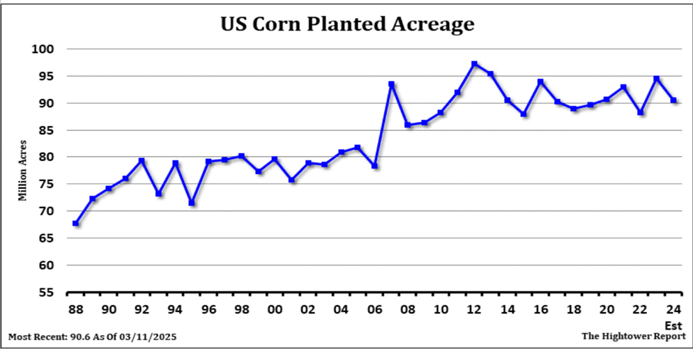 Soybean futures ended higher with SK near 10.15. Soyoil is higher and near 44 cents on talk tariffs could reduce China export of UCO to US and Canada exports of canola oil to US. Soymeal prices have also dropped below 300 on concern of too much supply. Weekly US soybean export sales were only 12 mil bu. Season to date commit is near 1,681 mil bu vs 1,482 last year. USDA goal is 1,825 vs 1,695 ly. Sales were lower than expected. Fact Brazil and Argentina 2025 soybean crop will be 17 mmt above last year could begin to slow new US sales. Some could see SN above 10.50 if US soybean acres are 4-5 million less than last year