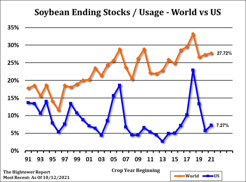 Soybeans and soyoil ended lower. Informa est US soybean yield unchanged at 51.5. Higher harvested acres would add only 6 mil bu to the crop. Still trade is concerned that USDA could drop export 50-70 mil bu. This could increase US 2021/22 soybean carryout closer to 400 mil bu. Weekly US soybean exports sales are estimated near 1,000-2,000 mt vs 1,183 last week. Commit is behind pace to reach USDA goal. Brazil soybean plantings are 52 pct, up 20 pct from last week and 42 pct last year. This could suggest Brazil could have soybeans for export as early as Jan. SF is near 12.43. This is near key support. USDA Nov crop report is Nov 9. Average trade guess for US 2021 soybean crop is 4,484 mil bu vs 4,448 in Oct. Range is 4,442 to 4,536. Trade est US 2021/22 soybean carryout at 362 vs USDA Oct 320. Range 310-449. Trade est World Soybean end stocks at 105.4 mmt vs 104.5 in Oct. Matif, Canada and Dalian canola futures continue to make new highs.