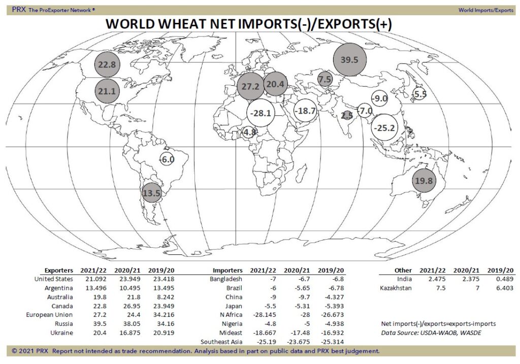 Wheat futures traded higher. Lower US Dollar and higher corn futures rallied wheat futures. WU is near 6.54, KWU is near 6.29 and MWU is near 8.72. WU is back over 6.40 and 6.50 resistance. Next level is near 6.62. KWU is also above 6.10 resistance. Next level is 6.40. MWU made new highs. Some look for MWU to test 9.50. Lower US/Canada wheat crops supportive. Canada wheat crop could drop to 21 mmt from USDA WOB 31.5. There is also talk that rain is delaying Europe wheat harvest and raising concern about quality. There is also talk that Russia wheat crop size is dropping due to hot/dry weather. US Millers need Q4 coverage. US bakers may be only 30-40 pct covered. Lower US 2021 spring crop could increase options on blends. Higher protein specs on spring wheat flour where possible and importing more Canadian. There could be enough wheat to grind domestically but a matter of price. Higher than average HRW and HRS basis levels has reduced buying. US soft white crop is also down from average.