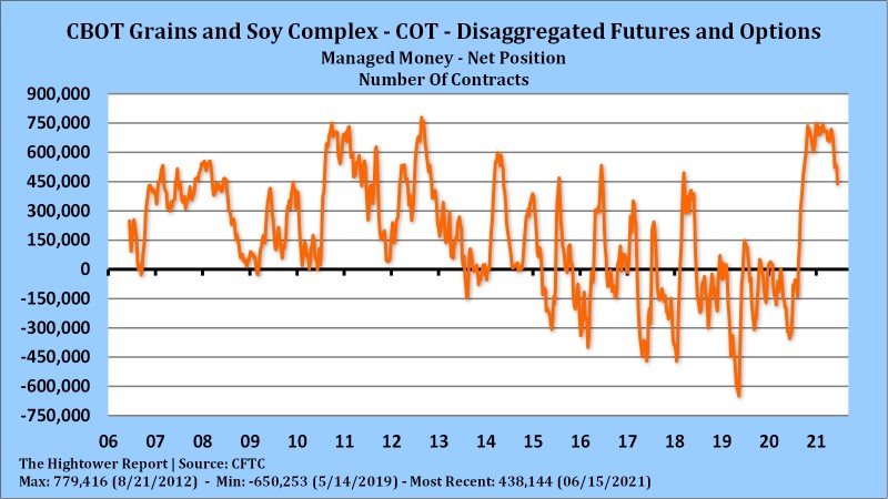 Managed funds continue to liquidate soybean and soymeal longs on US central Midwest rains and lack of new US soybean export demand. Talk of warmer and drier US NW Midwest July weather and that US 2020/21 soybean carryout could be lower than USDA June guess and below 100 mil bu. Soybean futures have dropped despite drop in weekly US crop ratings. Money is focused on US central Midwest rains and slow soymeal demand. Weekly US export sales are est near 200-800 mt vs 6 last week. USDA announced 300 mt of US new crop soybeans were sold to China. Index funds continue to be record long and grain and oilseed futures. Commercials are also near record short grain and oilseed futures. Key will be summer weather, China demand and USDA June 30 report.