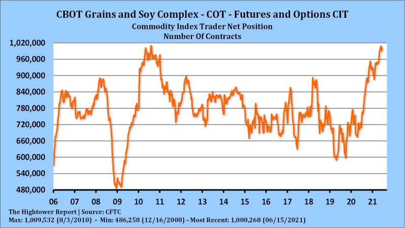 Wheat futures traded higher. Concern about NA HRS crop is pushing MWU higher. WU and KWU is following. Next 2 weeks US north plains and Canada prairie weather forecast is for warm and dry weather. Some are now looking at 1988 as similar year when only 75 pct of the ND spring crop was harvested and yield was only 15. Some est US 2021 HRS crop near 450 mil bu vs 530 last year. US HRW harvest should advance. Yields are reported above expectations but protein is below average. Some est US 2021 HRW crop at 770 mil bu vs 659 last year. US export demand is slow but some forecast feeding at 100 mil bu. US SRW crop is also forecasted at 335 mil bu vs 266 last year. Carryout could increase to 170 mil bu vs 111 last year. US 2021 white wheat crop is est near 250 mil bu vs 300 last year.  Lack of rain could drop crop even more. US 2021 durum crop is est near 55 mil bu vs 69 last year. Carryout could drop to 18 mil bu vs 30 last year. Liquidation of long corn and short position is also helping wheat futures.