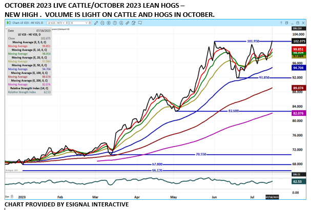 Lean Hog futures have been trading in a choppy sideways pattern since the July 4th break. After traders took profits at the end of May, getting out of shorts and liquidating the short legs of cattle and hog spreads, as the market rallied in June, volume has not been what it was.