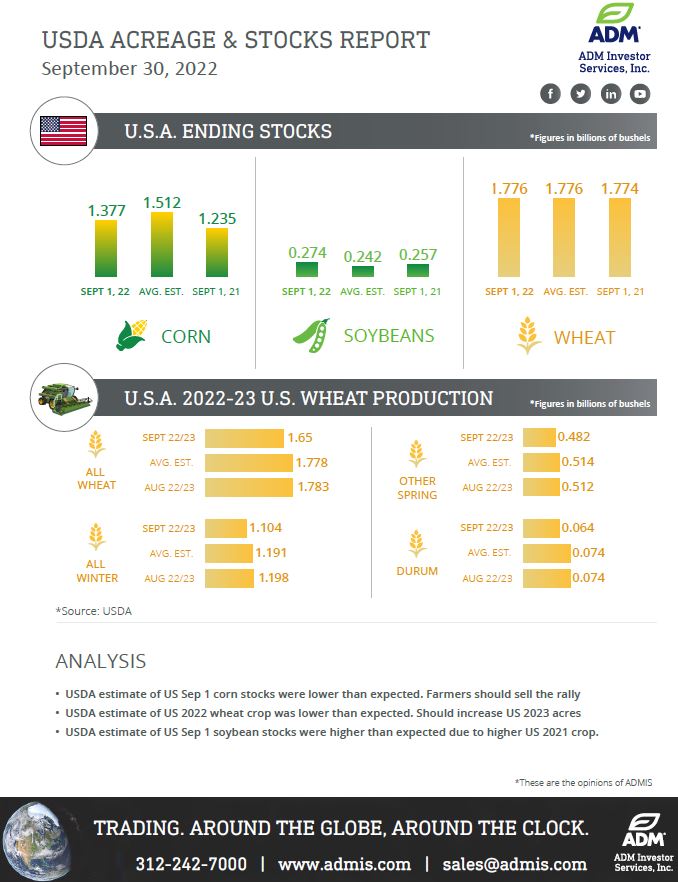 • USDA estimate of US Sep 1 corn stocks were lower than expected.